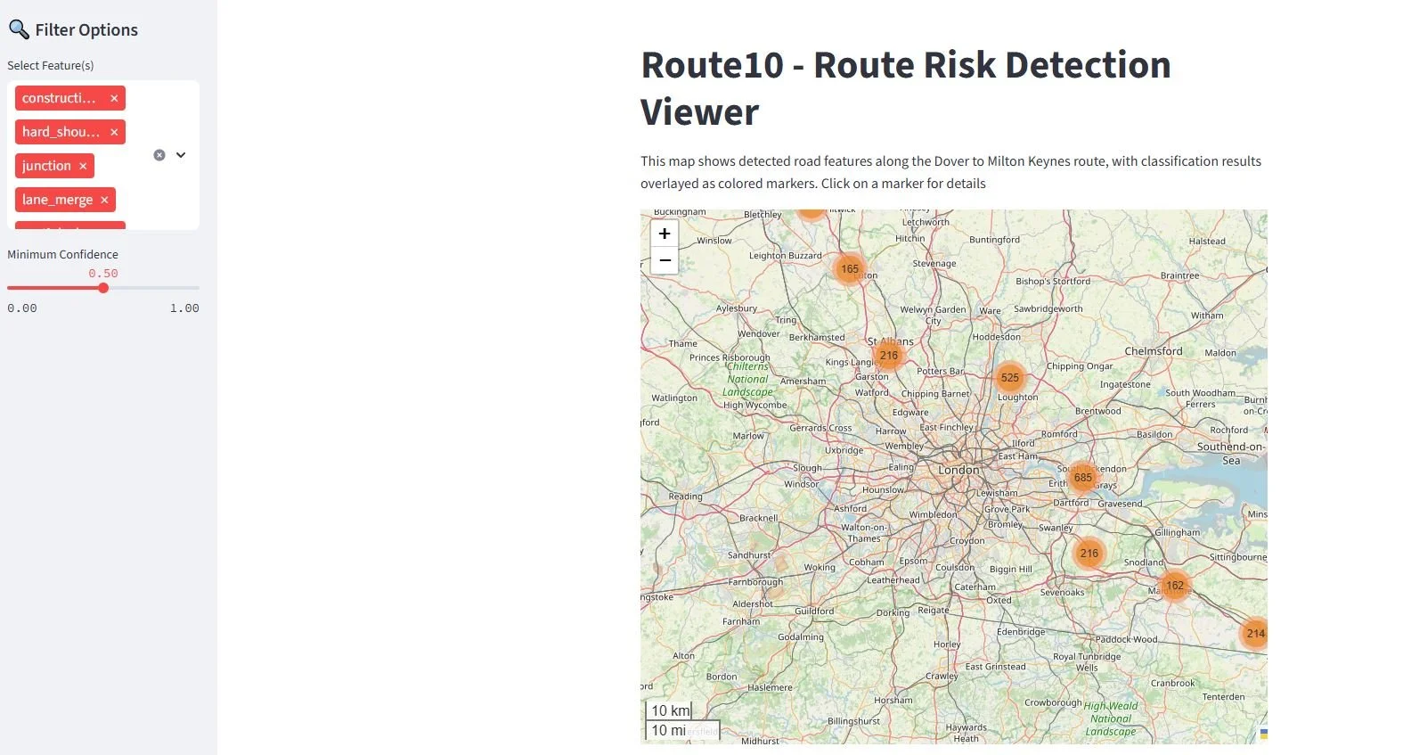 We analyse your selected corridors using Route10’s CAV Risk Engine - a system that evaluates road geometry, signage, crossings, and environmental factors such as fog, rain, and lighting. Each segment is scored for safety, complexity, and AV compatibility, producing a precise risk map of where autonomy can thrive or needs reinforcement.